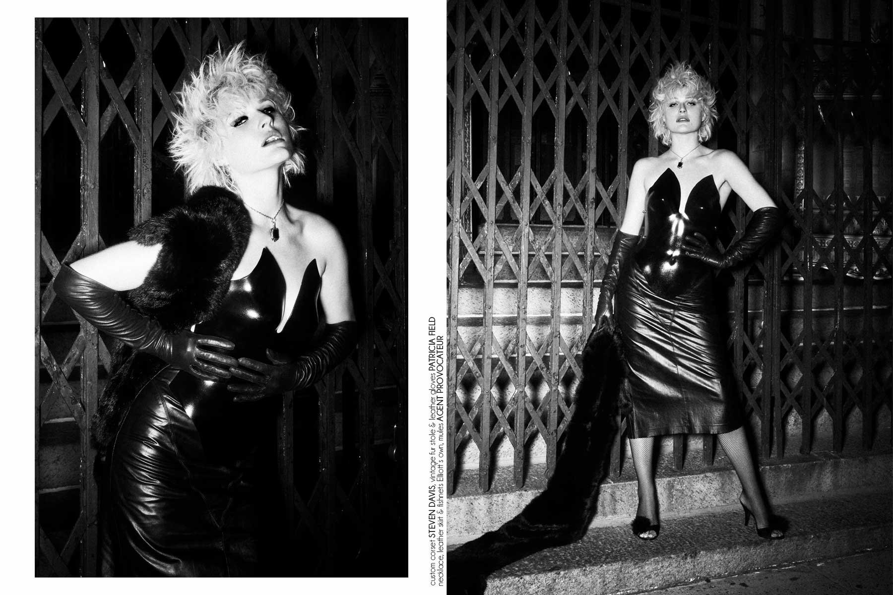 “Elliott Brakebill a.k.a “Dove Mother” is a striking beauty that walks the streets of downtown New York City with her own stupendous 80s style. Elliott’s look nonchalantly radiates as if she walked off an early 80s European runway. Her signature tousled bleach blond coiffure reminds us of why (as curious young teenagers) we sat glued for hours and hours on end watching early MTV videos. Yeah, there was some cool music. But part of it was for glimpses of the wild underground fashion/style, which seemed worlds away from our suburban dwellings. This girl, however, is more than just a visually stunning creature. In conversation Elliott is a well-read, intellectual thinking gal. With Southern roots and an extremely pleasant demeanor, we were so excited to shoot this stunner and interview her."